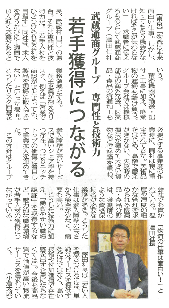 「物流は本来、非常に面白い仕事。しかし、その魅力は伝えなければ伝わらない」——。武蔵通商グループは、この想いから「若手人材を惹きつけられる企業」を目指しています。