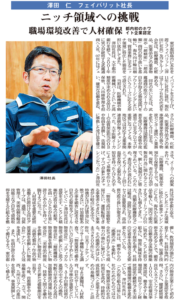 弊社代表がインタビューを受け、薬事物流のスペシャリストとしての歩みとホワイト企業認定取得等の取り組みを行う内容が新聞に掲載されました。